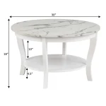 Bring home the classic design American Heritage Round Coffee Table with Shelf by Convenience Concepts. Its round silhouette features slightly curved legs along with a bottom shelf. With two circular tiers, there is plenty of space to display beautiful centerpieces or entertainment essentials. This rich veneer-finished coffee table is crafted from manufactured wood and the sturdy legs are engineered from solid rubberwood, making this piece durable and easy maintenance. Assembly is simple and requires only 3 easy steps. Available in multiple finishes, this circle table will become a staple in your home right away. Pair with additional items from the American Heritage Collection by Convenience Concepts, each sold separately.