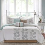 This beautiful 6 Piece Reversible coverlet set is a classic stylish look with an embroidered leaf print. Caelie is blue and white with subtle stripes that add texture. The coverlet reverses to a soft blue. With a microfiber polyester face and a brushed fabric reverse, this coverlet is soft to the touch and machine washable for easy care. Two matching standard shams and three embroidered decorative pillows complete the look. Queen size features two rows of embroidery, King size features three rows.